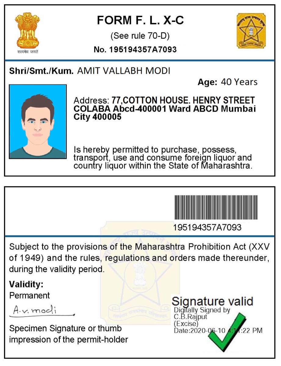 A VALID PERMIT IS MANDATORY FOR PURCHASE , POSSESSION , TRANSPORT , USE & CONSUMPTION OF FOREIGN LIQUOR IN THE STATE OF MAHARASHTRA